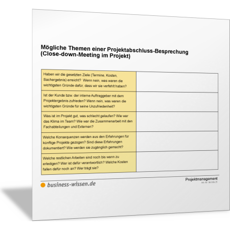 Themen einer Projektabschluss-Besprechung (Close-down-Meeting im Projekt)