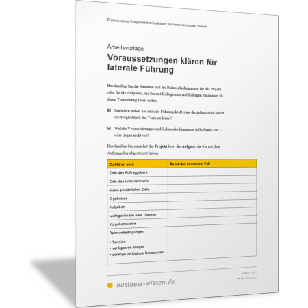 Mit dieser Vorlage klären Sie die Situation und prüfen, ob die Voraussetzungen und Rahmenbedingungen für laterale Führung gegeben sind.