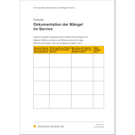 Erarbeiten Sie schließlich einen Maßnahmenplan, mit dem Sie Ihre Servicequalität verbessern und dann sicherstellen. Binden Sie dabei auch Ihre Mitarbeiterinnen und Mitarbeiter mit ein, die den Service erbringen und mit den Kunden direkt interagieren. Nutzen Sie dazu die Vorlagen Maßnahmenplan Servicezuverlässigkeit sowie Qualifikation und Kompetenzen für Kundenservice und Grundlagen Serviceverhalten der Mitarbeiter.
