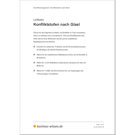 In der Vorlage Konflikte zwischen Mitarbeitern erkennen und lösen finden Sie Erläuterungen, wie Sie Schritt für Schritt vorgehen, um einen Konflikt zwischen Mitarbeitenden zu bearbeiten und zu lösen.