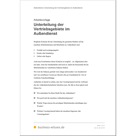 - eine ausgewogene Verteilung der Verkaufsgebiete