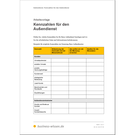 Alle wichtigen Kennzahlen sind in der Vorlage „Kennzahlen für den Außendienst“ zusammengefasst.