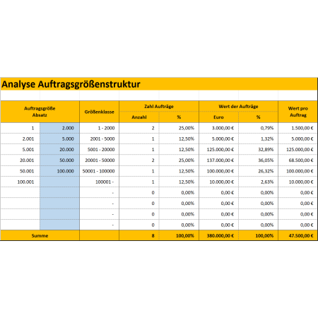 Ein wichtiger Bestandteil der Außendienstorganisation ist die Aufteilung der Vertriebsgebiete. Mit der Vorlage „Absatzgebiet für den Außendienst unterteilen“ analysieren Sie: