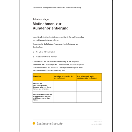 Kennen Sie die Gründe für die Abwanderung, brauchen Sie passende Maßnahmen zur Kundenrückgewinnung. Diese müssen auf die Abwanderungsgründe individuell zugeschnitten sein. Nutzen Sie dafür die Vorlage Maßnahmen zur Kundenrückgewinnung planen.