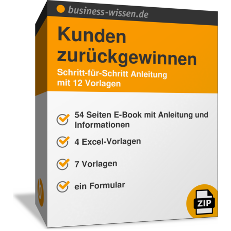 Fragen Sie sich zudem: Lohnt es sich, den Kunden zurückzugewinnen? Für die Beantwortung dieser Frage müssen Sie den Kundenwert ermitteln. Mit der Excel-Vorlage Kundenwert quantitativ und qualitativ ermitteln bewerten Sie Ihre Kunden anhand monetärer und nicht monetärer Kriterien.
