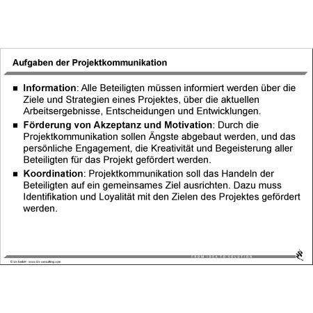 Mit der Präsentation: Ziele, Erfolgsfaktoren und Aufgaben der Projektkommunikation schaffen Sie dafür das Verständnis.