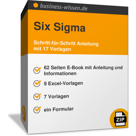 In diesem Dokumentenpaket ist der Six-Sigma-Prozess DMAIC ausführlich erläutert. In der Vorlage DMAIC: Six-Sigma-Kernprozess sind die Aufgaben in der Übersicht abgebildet. Um den Prozess im Rahmen des Qualitätsmanagements einzuführen, können Sie die Vorlage Vorgehensweise zur Einführung von Six Sigma nutzen. Für die Beschreibung Ihrer Six-Sigma-Projekte dient das Formular Six-Sigma-Projektauftrag.