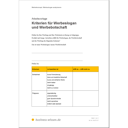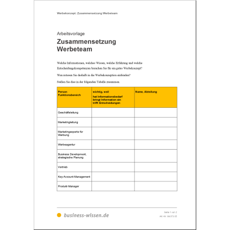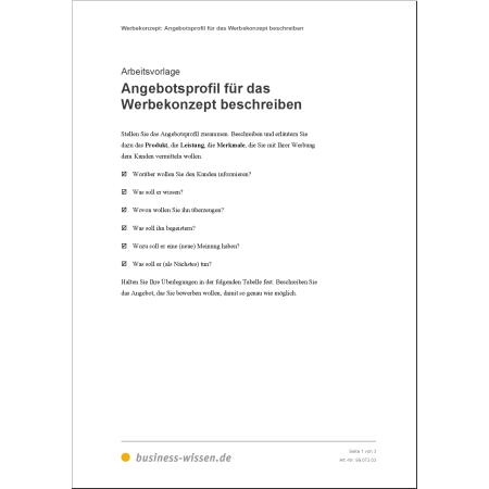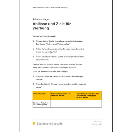 Ein erfolgreiches Werbekonzept beginnt mit einer klaren Analyse. Mit den enthaltenen Vorlagen klären Sie: