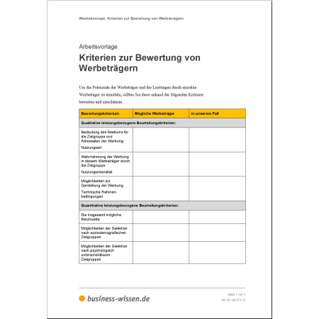 Dieses Dokumentenpaket unterstützt Sie dabei, Ihre Werbung gezielt zu planen, umzusetzen und zu optimieren.