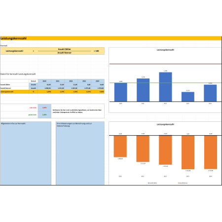 Deshalb ist die Darstellung so wichtig. Visualisieren Sie Ihre Kennzahlen mit den Excel-Vorlagen und Tools aus diesem Handbuch-Kapitel, zum Beispiel für Soll-Ist-Vergleiche, Zeitreihenanalysen oder für die Berechnung von Produktivität (Output pro Input). Sie können diese leicht an Ihre eigenen Anforderungen anpassen und so Ihre eigenen Dashboards für die für Sie wichtigen Kennzahlen entwickeln. Damit haben Sie die entscheidenden Kennzahlen im Blick und können diese auch anderen vermitteln.