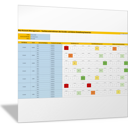 Tochterunternehmen und Beteiligungen des Key-Account-Kunden sind für den Lieferanten oft ein erhebliches Verkaufspotenzial. Allerdings kann es dort auch Vorbehalte geben. Deshalb sollte die Geschäftsbeziehung zu den Beteiligungen des Key-Account-Kunden und zu seinen Tochterunternehmen beobachtet und gepflegt werden. Mit dieser Excel-Vorlage behalten Sie dafür die Übersicht und bewerten dabei anhand einer Punktbewertung die bisherige Zusammenarbeit.