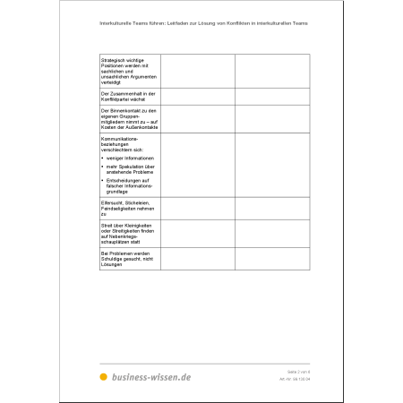 Der Leitfaden führt Sie Schritt für Schritt durch den gesamten Klärungsprozess eines Konflikts im interkulturellen Kontext. Dabei unterstützen strukturierte Fragen und Vorlagen bei der systematischen Analyse und Lösungsfindung.