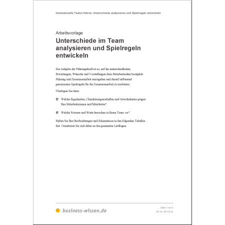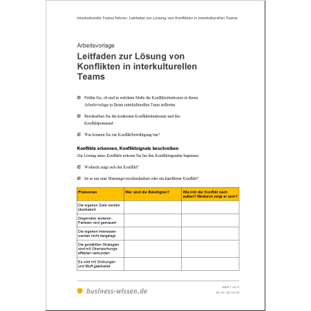Vorlage: Konflikte in interkulturellen Teams erkennen und bewältigen