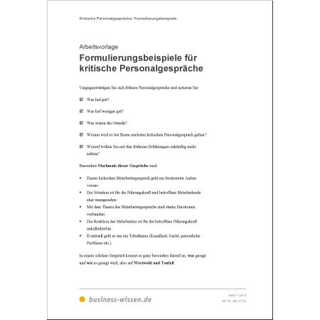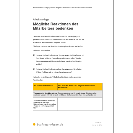 - strukturierte Vorbereitung kritischer Mitarbeitergespräche