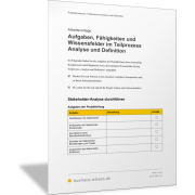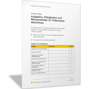 Für jeden der vier Projektprozesse erhalten Sie außerdem je eine Vorlage Aufgaben, Fähigkeiten und Wissensfelder im Prozess. Darin werden die Aufgaben der Projektleitung in den jeweiligen Prozessschritten und die Anforderungen an sie genannt.