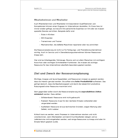 - Räume, Fahrzeuge, Werkzeuge, Personal und andere Ressourcen