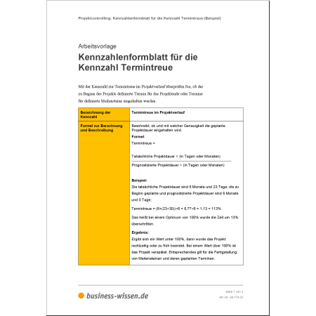 Zur Unterstützung Ihrer Arbeit erhalten Sie Vorlagen zur Definition des Zielkatalogs Ihrer Projektziele und zur Ableitung der Kennzahlen, eine Vorlage für einen Kennzahlensteckbrief (auch Kennzahlenformblatt genannt) sowie zwei Beispiele als Vorlage für einen Kennzahlensteckbrief.