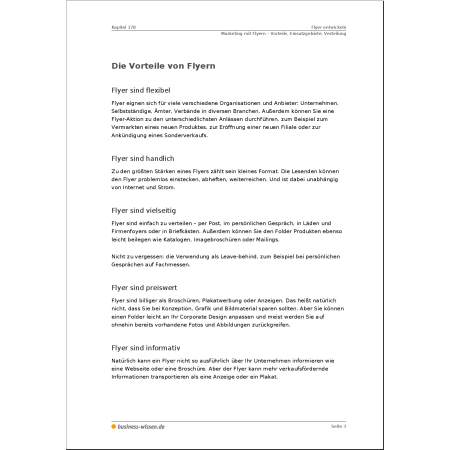 Das besondere Plus: Viele Tipps können Sie auch auf andere Werbemittel übertragen, etwa die Nutzenargumentation oder das Texten von Überschriften. So profitieren Sie gleich mehrfach von diesem Dokumentenpaket.