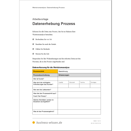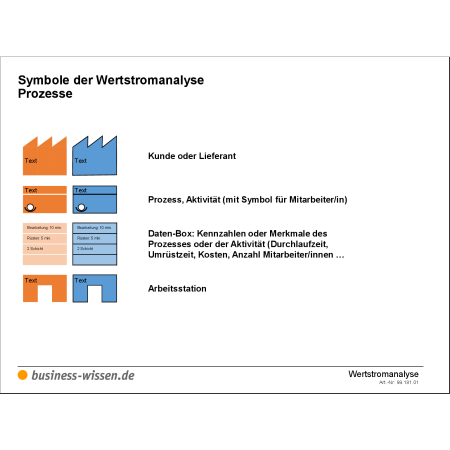 Eine Variante dieser Prozessdarstellung und Prozessanalyse ist auch Grundlage für die Makigami-Methode aus dem Lean Management. In diesem Dokumentenpaket ist genau erklärt, wie ein Prozessbild nach Makigami erstellt wird und wie Sie damit Zeit- und Ressourcenverschwendung erkennen und beseitigen.