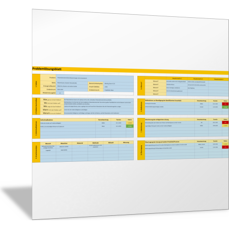Sie tragen Daten ein und sehen anhand des Status, ob Maßnahmen noch offen oder bereits erledigt sind. Anhand eines Beispiels zeigen wir, wie das Problemlösungsblatt genutzt wird.