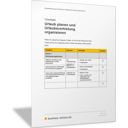 Urlaub planen und Urlaubsvertretung organisieren - Checkliste