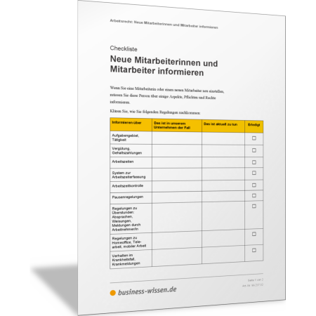 Checkliste: Darüber müssen Sie neue Mitarbeiter informieren