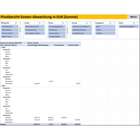 Dafür haben wir ein spezielles Excel-Tool entwickelt, mit dem Sie die einzelnen Servicefälle analysieren und die Leistungen des Kundenservices bewerten können. Mit einem Kundenanruf, einer E-Mail oder einem Eintrag im Web-Formular entsteht automatisch ein Servicefall oder Ticket, das bearbeitet werden muss.