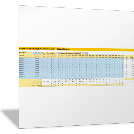 Mit dieser Excel-Vorlage berechnen Sie, wie viel Personal Sie für Ihre Kundenhotline oder ein Callcenter im Verlauf eines Tages benötigen. Grundlage sind die unterschiedlichen Servicefälle und ihre Bearbeitungsdauer. Im Stundenraster eines Tages geben Sie an, wie häufig die einzelnen Servicefälle bearbeitet werden müssen (Schätz- oder Erfahrungswerte). Sie erkennen dann, zu welchen Uhrzeiten Sie wie viel Personal benötigen, und können den Mitarbeitereinsatz im Tagesverlauf steuern. Das Ergebnis wird in einem Diagramm visualisiert.