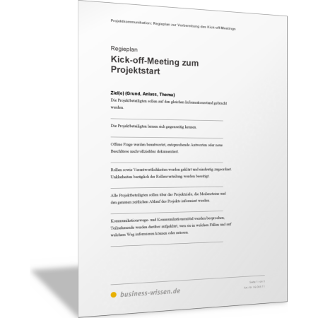 Planen Sie mit dem Regieplan Ihr Kick-off-Meeting. Erstellen Sie eine Agenda und reflektieren Sie das Ergebnis nach der Projekteröffnungsbesprechung.