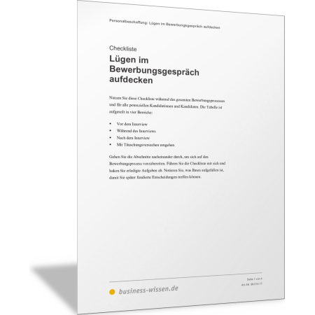 Besonders hervorzuheben ist die spezielle Ausrichtung der Checkliste auf die Aufdeckung von Lügen. Sie enthält spezifische Indikatoren und Fragen, die darauf ausgerichtet sind, Widersprüche und mögliche Unwahrheiten der Bewerberinnen und Bewerber zu erkennen. Dies ist ein entscheidender Vorteil, weil Authentizität und Integrität gerade am Arbeitsplatz Schlüsselwerte sind.