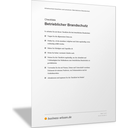 - Das Dokument dient nicht nur als Gedächtnisstütze, sondern auch zur detaillierten Information und Dokumentation aller Brandschutzmaßnahmen in Ihrem Unternehmen.