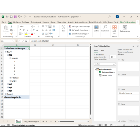 - wie Tabellen aus dem Datenmodell verknüpft werden und Power Pivot diese Daten auswertet