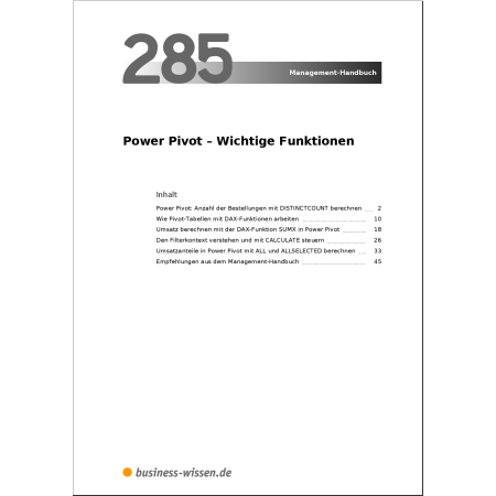 So nutzen Sie grundlegende Funktionen in Power Pivot, die für die Datenanalyse immer wieder benötigt werden: DISTINCTCOUNT, SUMX, CALCULATE sowie ALL und ALLSELECTED.