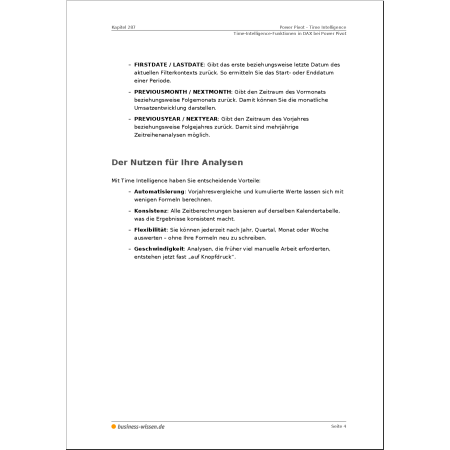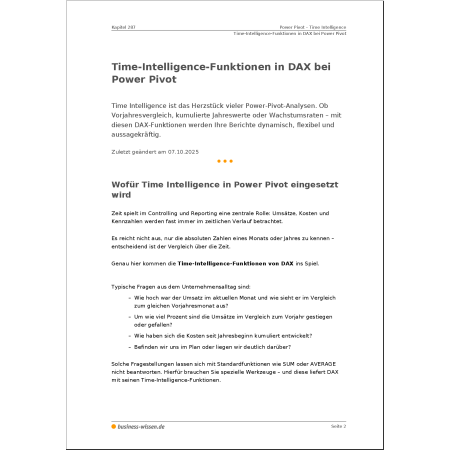 - mit speziellen DAX-Funktionen und Measures zum Zeitreihenvergleich