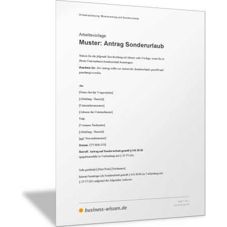 Nutzen Sie diese Beschreibung als Muster oder Vorlage, wenn Sie in Ihrem Unternehmen Sonderurlaub beantragen. So fassen Sie alle wichtigen Informationen und die Gründe für Ihren Antrag für Ihren Arbeitgeber und die Personalabteilung zusammen.