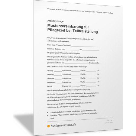 Mustervereinbarung für Pflegezeit bei Teilfreistellung