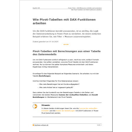 - Pivot-Tabellen mit DAX-Funktionen arbeiten,
