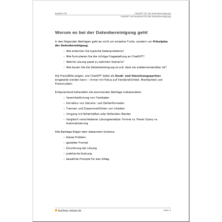 - Für die Prüfung und Bereinigung von Daten in Excel gibt es unterschiedliche Wege. So hilft ChatGPT bei der Auswahl, aber auch bei der Kombination von Formeln und Power Query für die Datenbereinigung.