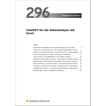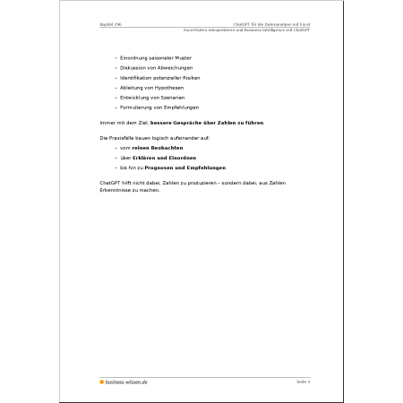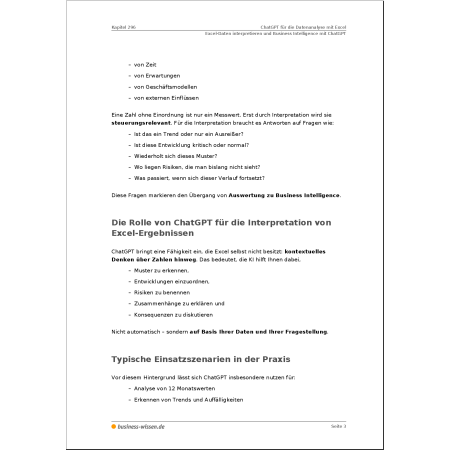 Mit diesen Prompts und Formulierungen nutzen Sie die KI gezielt, um Ihre Excel-Daten besser zu verstehen und wichtige Erkenntnisse daraus abzuleiten. In diesem Dokumentenpaket erfahren Sie, was ChatGPT leisten kann für diese Aspekte: