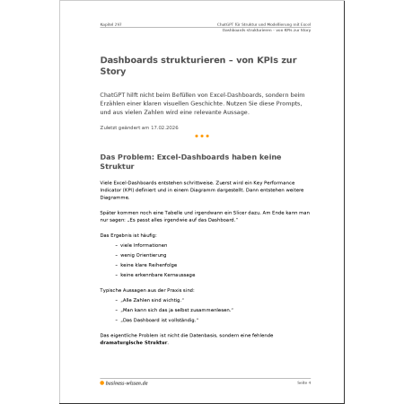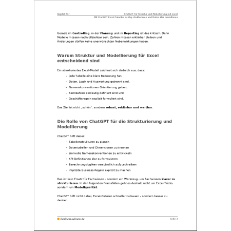 Erstellen Sie mit ChatGPT und den Prompts, Formulierungshilfen und Anleitungen aus diesem Dokumentenpaket ein strukturiertes Excel-Modell von Anfang an. Es zeichnet sich dadurch aus, dass: