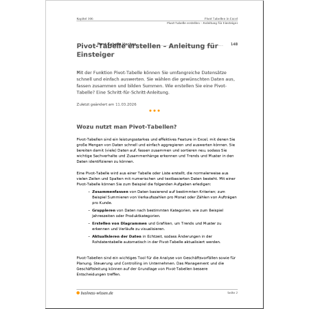 - Mit Pivot-Tabellen Reports und Diagramme erstellen