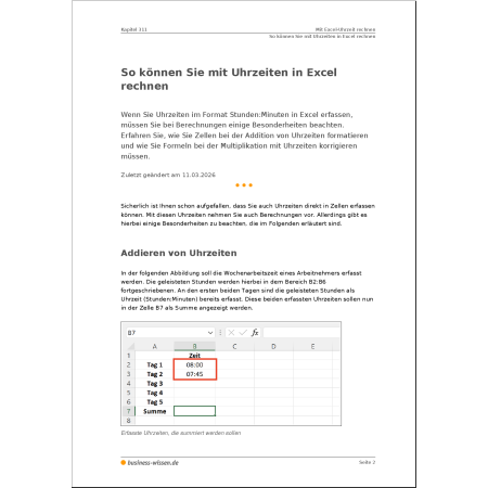 - Wie Excel intern mit Uhrzeiten rechnet