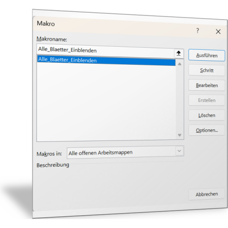 Alle ausgeblendeten Tabellenblätter in Excel-Mappe einblenden (Makro)